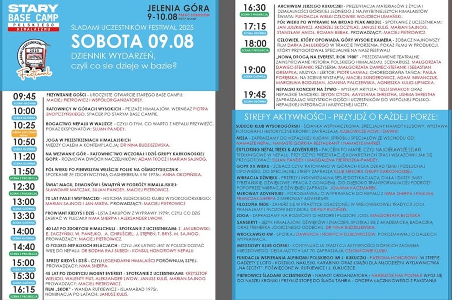W ramach wspomnień w klimacie wypraw w Himalaje lat 70, Grupa Karkonoska GOPR uczestniczyła prezentując zabytkowy sprzęt ratowniczy GOPR-u w Polsko-Nepalskim Festiwalu – ŚLADAMI UCZESTNIKÓW 2025 – Jelenia Góra 9 -10.08.2025 Pałac Sobieszów.